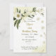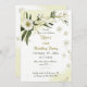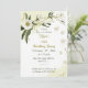Romantiska vita blommor och guld med grönt lövs geometriska födelsedagsfest inbjudan. glitter-detaljerna simuleras