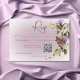 Romantisk vit och Lila Blommigt Modern Bröllop QR OSA Kort