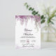 Denna romantiska kalligrafi wisteria lila bröllopsinbjudan på ett enkelt vykort har blomsterträdgård pastellfärger. De mjuka blommorna ger den en elegant touch med fantastiska flamländska svängar—vacker handskriven typografi. Perfekt för ett utomhusbröllop i trädgården eller ett boho botaniskt tema-bröllop. Lägg till alla dina bröllopsdetaljer och klicka på REDIGERA-knappen för att anpassa typsnitt och färger.