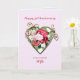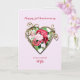 Ett mycket romantiskt och elegant 30:e bröllop-årskort. Ett vackert kort till ge för din fru. Ett gyllene hjärta med en bukett av målat ro.