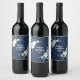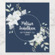 Eleganta och romantiska anpassningsbara vinetiketter för din bröllopsfest, med en vacker bukett av vita ömma vattenfärgblommor på en klassisk mörk preussiblå bakgrund. Redigera enkelt mallfälten för att lägga till brudens och brudgummens namn i ett klassiskt vitt skrivstil, och er bröllopsdatum i ett modernt versalstil.