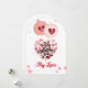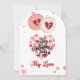 Uttryck din djupaste tillgivenhet med detta vackra och romantiska Alla hjärtans dags-kort. Designen har en fantastisk hjärtformad collage gjord av ömtåliga vattenfärgshjärtan i rosa och röda nyanser. Toppad med fantasifulla cirkulära "6" och "7"-motiv och färdig med en djärv, elegant "Min älskling"-skrift, är detta kort ett tidlöst sätt att fira din relation. Oavsett om det är till din make, pojkvän eller flickvän, utstrålar detta kort värme och kärlek.