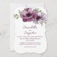Denna romantiska bröllopsinbjudan har en akvarellstilad blomsterdesign. En bukett av vinröda anemoner visas längst upp. Diskret grönska accentuerar anemonblommorna. Bröllopsinformationen är tryckt i den nedre delen.