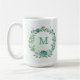 romantiska blå blommor med gröna blad botanisk kaffekopp.