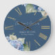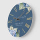 Romantiska blå vattenfärg Hydrangea Flowers på mar Stor Klocka