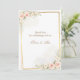 Romantisk blomsterbröllopsdetaljkort med dammiga rosa peonior och mjuk botanisk grönska. Elegant akvarelldesign skapad för att dela viktig bröllopsinformation såsom boende, dresscode, schema och ytterligare evenemangsinformation.