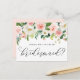 Söt blommigt bridesmaid frieri kort. Be familj och vänner att vara med i din bröllop med den här personligen "Kommer du att vara min bridesaid"-kort. Den har en blommigt av vattenfärg med rosa och vit ros och grönt. Anpassa genom att lägga till ett namn och ett meddelande