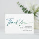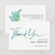 Enkel minimal modern skrift " tack " i blågrön ombre bröllopsdusch-kort. På baksidan med vilda blommor i en burk. blågrön ombre med anpassningsbar text.
