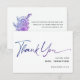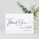 Enkel minimal modernt manus "tack" i blå lila ombre bröllopsdusch-kort. På baksidan med vilda blommor i en burk. blå lila ombre med anpassningsbar text.