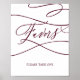 Denna romantiska burgunderröda text kalligrafi bröllopsfavoriter affisch är perfekt för ett enkelt bröllop. Den moderna klassiska designen har fancy svängar och lekfulla utsmyckningar med vacker elegant handskriven typografi.