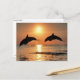 Djurkort i fantastisk som visar två delfiner som hoppar vid solnedgången.