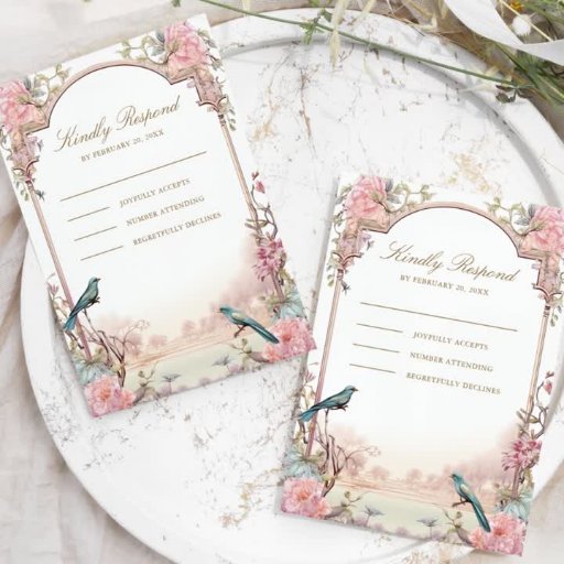 Romantiska fåglar Rosa Blommigt Bröllop OSA Kort
