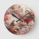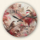Väggklocka med en fantasifull målning av två söta fåglar i varma färger. De klassiska romerska klocknumren kan raderas om du inte behöver dem. Vacker för den romantiska själen eller som bröllops- eller årsdagspresent.