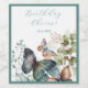 Romantiska gröntar, blommor och fjäril vinflaska etikett