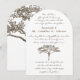Framhäver dina initialer i stammen på baksidans träd Vintage-utförande, romantisk skiss av ett ensamt träd på en enkel, brun inbjudan men du kan lägga till färg genom att ändra brudens och brudgummens namn till valfri färg du önskar.