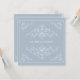 Romantiska antika dekorationer i vitt mot en ljusblå bakgrund som ram för denna inbjudan. Anpassa till fullo med din egen namn och information. En inbjudan lämplig för alla tillfälle: bröllop, förlovningsfester, en spara-till-datum eller en företagshändelse. Finns i alternativa färger med matchande kort, favoriter och porto.