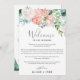 Dessa romantiska peonior välkomstbrev & resplan-kort är perfekta för ett elegant bröllop. Den blomsterrika designen har skär rosa, persikofärgade och vita vattenfärgblommor som flödar över. Framsidan av kortet har ett välkomstbrev och baksidan har bröllopsresplanen. Dessa anteckningar är perfekta för destinationbröllop och välkomstpresenter till hotellgäster.