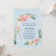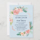 Denna romantiska blommiga påskönsblommor ljusblå bröllopsinbjudningskort är perfekt för ett elegant bröllop. Den blomstera inredningen har rosafärgade, persikofärgade och vita akvarellblommor med falska roséguld geometriska element på en ljusblå bakgrund.