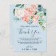 Detta romantiska pioner ljusblå tack bröllopskort är perfekt för ett elegant bröllop. Den blomsterrika designen har rosafärgade, persikofärgade och vita vattenfärgblommor på en ljusblå bakgrund. Placera dessa kort vid varje gästs plats vid er bröllopsfest. Personalisera kortet med era namn och ett speciellt tackmeddelande.