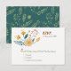 Ett bra, handmålat, kyssande par omgivet av blommor och löv gör den här roliga bröllopsinbjudningen till en charmer! En mönster av löv på mörk grönt bakgrund längst bak ger en återpekare för vintagen. Alla illustrationer är originella. Se min teckning processaa på www.instagram.com/arncyn