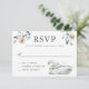 Vattenfärgen ro i grå, benvit med blå grönt-läafi bildas i motsatt hörn i denna OSA kort i elegant bröllop tillsammans med en graciös vit svan. Den koordinerar med bröllopssviten för Bröllop Svanar. Anpassa det svarsdatum som krävs och som visas i designmallen till det datum som krävs.