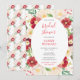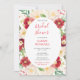 Denna söta och fantasifulla akvarell bröllopsdusch-inbjudan har färgglada röda och krämfärgade blommor med grönskande lövverk. Texten kombinerar handskriven skrift och sans serif-teckensnitt för en stilren och modern look. Detta är perfekt för en vår- eller sommarbröllopsdusch.