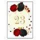 Romantiska röda och svarta blommor guld bröllop bordsnummer
