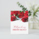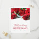 Romantiskt brudtjej-vykort i rött och vitt med rosor och elegant typsnitt.