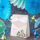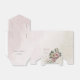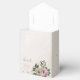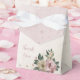 Unik bröllopspresentlåda med romantiska rosa och champagnefärgade blommor och gröna blad.