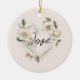 Romantiska rosor med fjädrar hjärta kärlek julgransprydnad keramik