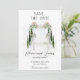 Meddela din speciella dag med stil med detta eleganta "Spara Datum"-kort, med en vacker illustrerad bröllopsbåge prydd med mjuka romantiska rosor. Perfekt för trädgårdsbröllop, utomhusceremonier eller för alla par som söker en tidlös blommig design. Helt anpassningsbart med era namn, bröllopsdatum och plats. En charmig inledning till er oförglömliga fest!