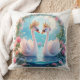 Eleganta svanar prydda med blomsterkransar och gyllene accenter, avbildade med blommande blommor och lugnt månljust vatten, som frammanar teman om romantik, grace och samhörighet i en fantasifull konststil.