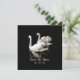 Romantiskt "Spara datum"-bröllopsmeddelande med en svart-vit bild av två vackra vita svanar.