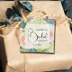 Personalisera dessa bröllopspresentsetiketter med vackra akvarellvita och gröna hortensior, rosa och krämfärgade rosor, prästkragar, små blommor och blad på dammig blå med dina detaljer i chic bokstavsstil. MATCHANDE artiklar i vår samling.