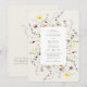 Fira din kärlekshistoria med denna romantiska vilda blommor botaniska bröllopsinbjudan, designad för par som älskar naturlig skönhet och tidlös enkelhet. Ömtåliga akvarellblommor blommar graciöst runt en mjuk, ljus och luftig layout, som frammanar charm från en soldränkt äng i full blom. Baksidan av inbjudan har en QR-kod för att inkludera din bröllopswebbplats för att ge ytterligare information om ditt bröllop och förenkla RSVP för dina gäster. De kan skanna QR-koden för att skicka in sina svar. Perfekt för trädgårdsbröllop, utomhusceremonier, landsbygdslokaler och vår- eller sommarfiranden, denna inbjudan kombinerar organiska blommor med klassisk typografi för ett utseende som känns både fräscht och bestående. Den elfenbensfärgade bakgrunden med vit infälld ram är idealisk för par som söker en förfinad men ändå effortless estetik, denna design sätter en sorglös romantisk ton som