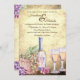 Allt i en romantisk vinodlarbröllopsinbjudan med vin flaska, glas och druvor på vintage stil. Lägg till all information om bröllop längst bak i inbjudan. -