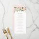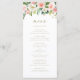Romantiskt akvarell persika blomsterkrans menykort. Anpassningsbart menykort med akvarell persika och elfenbensfärgade peonior och rosor med gröna accenter. Detta blomster menykort är perfekt för vår, sommar och trädgårdshundringar och andra evenemang. Matchande artiklar finns tillgängliga.