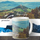 Mugg med ett foto av vintage stil. Romantiskt sommarlandskap: gammal kyrka vid backe, liten by i bergsdalen, skog i förgrunden, berg i bakgrunden. Underbar gåva till resande älskare och utomhusentusiaster. Snyggt i köket insida.