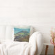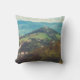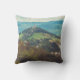Dekorativ kudde med ett foto av vintage stil. Romantiskt sommarlandskap: gammal kyrka vid backe, liten by i bergsdalen, skog i förgrunden, berg i bakgrunden. Underbar gåva till resande älskare och utomhusentusiaster. Snyggt som tillägg till det resetematiska insida.