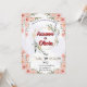 En vackert designad bröllopsinbjudan med mjuka pastellfärgade blommor, gyllene dekorationselement och ett elegant skrivstilssnitt. Persika- och rosafärgade rosor, i kombination med en gyllene cirkulär ram, skapar en sofistikerad och tidlös estetik. Användningen av ett djärvt rött typsnitt för parets namn säkerställer att de sticker ut, medan den formella men inbjudande typografin bibehåller en klassisk och stilren ton. Ett perfekt val för ett par som söker en romantisk och förfinad bröllopsinbjudan.