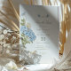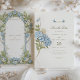 Det här förtjusande kortet för spara-the-date har en delikat och romantisk utformning av blommigten för vattenkraft. Mjuka blåblommor och elfenben kompletteras på ett vackert sätt med lush grönt bladage, vilket skapar en naturlig och sund känsla. Den invecklade lattice-stil gräns och den virvelande blommigten accentuerar i mjuka krämtoner och ger en vintage, en vismisk charm. Kortets teckningar visar en harmonisk blandning av traditionell botanisk illustration och ren linjer i contemporary, som utökas med en tryckt snöre-effekt för en lyxfärgad beröring. Perfekt för bröllop inspirerad av naturen, vintagens elegans eller trädgårdsteman är denna design perfekt för par som vill ha ett tidlöst och sofistikerat estetiskt system.