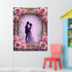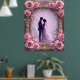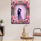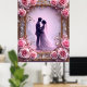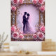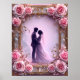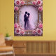 En brudgumme och brud står i en visuellt fantastisk design med blommor och änglalika motiv. Den intrikat designade ramen av rosor och pärlor förkroppsligar härligt kärlek och romantik.