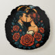Förhöj valfritt bostadsutrymme med denna vackra runda kastkudde, som visar en hjärtevärmande illustration av ett brudpar infattat i ömtåliga blommor och symboliska vigselringar. Designad i en livfull, semi-realistisk vektorkonststil, gör den centrerade kompositionen och den djärva moderna färgpaletten den i rampljuset – oavsett om den visas på en soffa, säng eller läshörna.