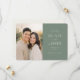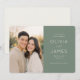 Denna eleganta bröllopsinbjudan har en mjuk och romantisk färgpalett med dämpade gröna nyanser och varma toner som inger en lugn och glädjefylld stämning. Layouten inkluderar ett framträdande fotområde för personalisering, omgivet av ren och modern typografi som ger en sofistikerad känsla till den övergripande designen. Perfekt för par som vill tillkännage sin speciella dag med stil, fångar denna design en tidlös elegans som passar för alla säsonger eller evenemang. Med anpassningsbara textområden kan du anpassa din inbjudan samtidigt som du behåller en underdriven charm som sätter tonen för en vacker kommande fest.