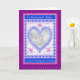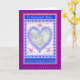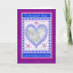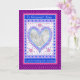 Ett vackert bröllopsdag fotokort med hjärtan och blommor i ett quiltliknande mönster, i blått, silver, rosa och lila. Lägg till ditt eget foto och din egen text både på insidan och på framsidan; från en handmålad design av Judy Adamson.