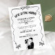 Den här svarta och vita inbjudan är både lekfull och modern och har ett hand plockade som vågigt ram, ett sött band och ett charmigt par som illustrerar ett älskat, ljusbesjälat intryck. Anpassa namn, datum, tid och plats på några minuter för att skapa ett rent, snyggt inbjudan som passar allt från ett klassiskt firande till ett roligt modernt party. Det ser vackert ut som i svartvitt, och du kan nå ut om du vill att färg ska ha en enkel tsvag eller koordinerande delar som stämmer överens med din vision.