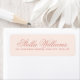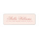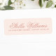 Elegant returetiketter med ditt namn i ett elegant calligraphy-skript och adress nedan på en lätt rosa-bakgrund.