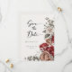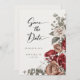 Klassisk traditionell spray och elegant med varm röd, antikvit och tan ro, baby utandning och eukalyptus på en gräddvattenfärg med stil bakgrund med anpassningsbar calligrafi Spara datumskriptet (färg kan anpassas) och redigerbar text fält. Baksidan har kompletterande grafik och extra fält.