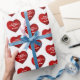 Romantiskt rött hjärta med Namn Valentine's Day Wrapping Papper. Mönster med vit anpassningsbar med röd . Anpassa med ditt namn.