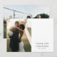Romantic bröllop tackar dig för att du har tryckt med två av dina bröllop-foton, en mindre på ena sidan och en större på den andra sidan. Tack och ditt bröllop-datum skrivet i ett snyggt teckensnitt med namn i ett romantiskt skript med utrymme för skriva av en personlig anteckning för hand.